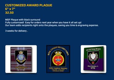Customized to your corps with Rank, Name, Years of Service. A brilliant award!