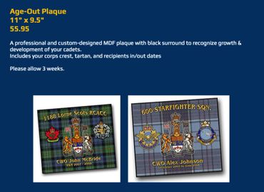 Customized to your corps with Rank, Name, Years of Service. An excellent award for a special cadet.